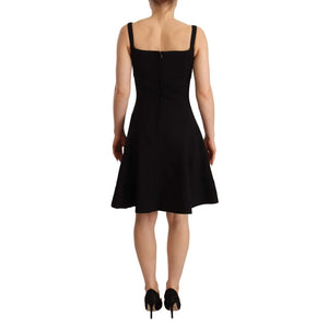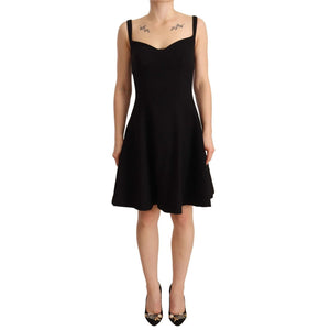 Dolce & Gabbana Black Fit Flare Wool Stretch Sheath Dress