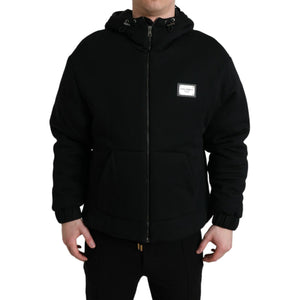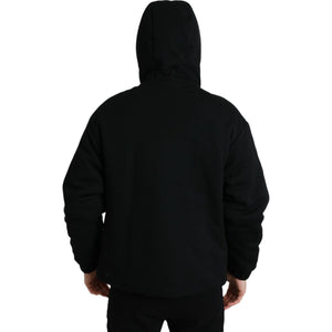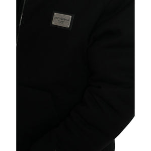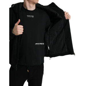 Dolce & Gabbana Black Cotton Hooded Logo Bomber Jacket