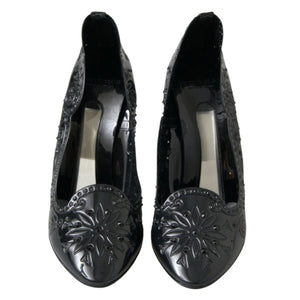 Dolce & Gabbana Black CINDERELLA Floral Crystal Heels Shoes