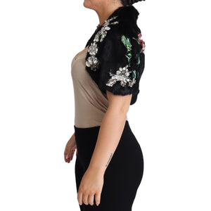 Dolce & Gabbana Black Rabbit Fur Crystals Sequin Coat