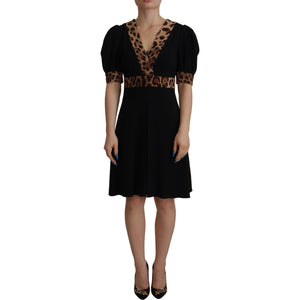 Dolce & Gabbana Black Leopard A-line Knee Length Dress
