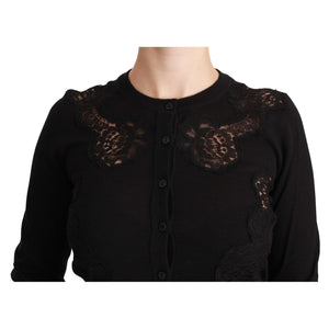 Dolce & Gabbana Black Cashmere Lace Cardigan Sweater