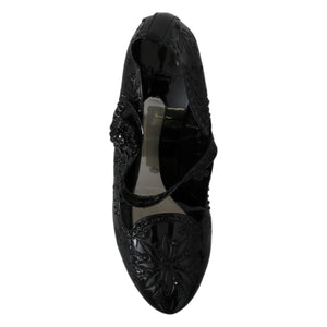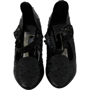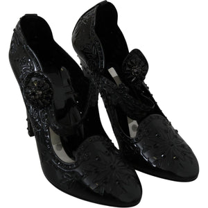 Dolce & Gabbana Black Floral Crystal CINDERELLA Heels Shoes