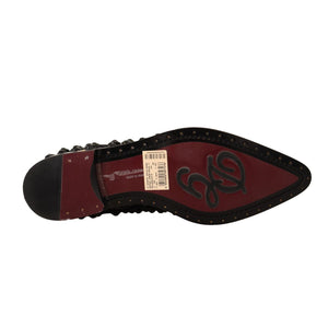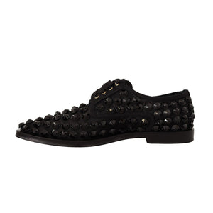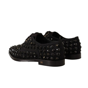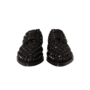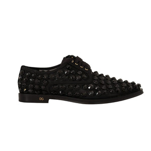 Dolce & Gabbana Black Lace Up Studded Formal Flats Shoes