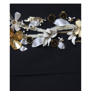 Dolce & Gabbana Black Floral Applique High Waist Tapered Pants