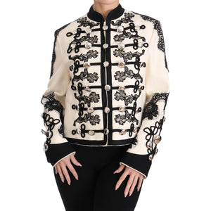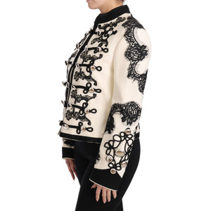 Dolce & Gabbana White Wool Black Floral Baroque Jacket