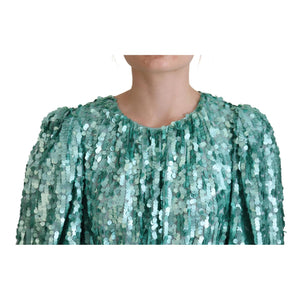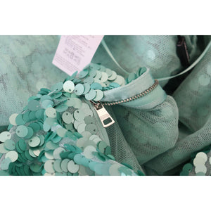Dolce & Gabbana Blue Sequined Pleated Aline Midi Nylon Dress