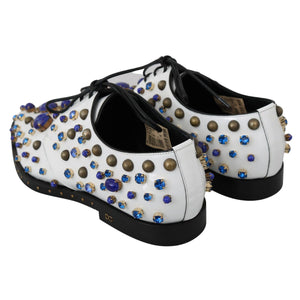 Dolce & Gabbana White Leather Crystals Dress Broque Shoes