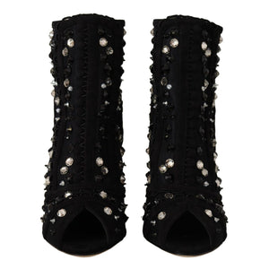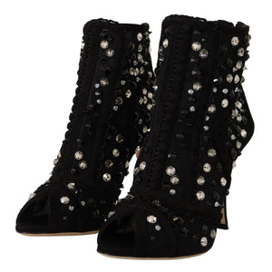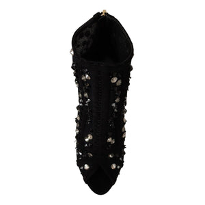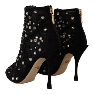 Dolce & Gabbana Black Crystals Heels Zipper Short Boots Shoes