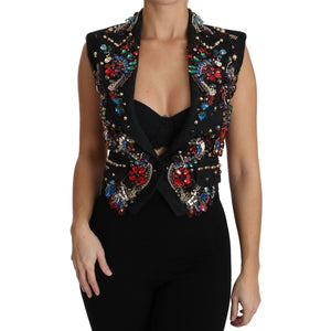Dolce & Gabbana Black Crystal Sicily Vest Waistcoat