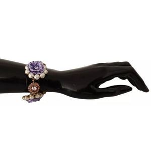 Dolce & Gabbana FIORI BLOOMING Floral Baroque Crystals Brass Bracelet