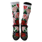 Dolce & Gabbana Black Floral Socks Crystal Jersey Boots Shoes