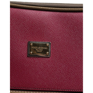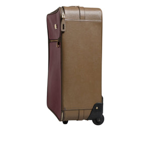 Dolce & Gabbana Fuchsia Khaki Leather Trolley Travel Wheel Suitcase Bag