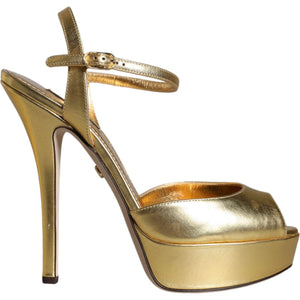 حذاء صندل جلدي بكعب ذهبي من دولتشي آند غابانا