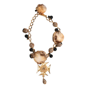 Dolce & Gabbana Gold Black Crystals Lapin Fur Filigree Choker Necklace