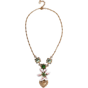 Gorgeous brand new, 100% Authentic Dolce & Gabbana gold-tone floral necklace features a mix of stone embellishments, a lobster clasp closure, a gold-tone chain and branded sacred heart pendant.