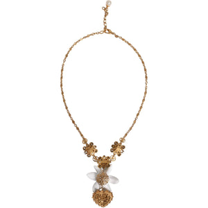 Dolce & Gabbana Gold Brass Lily Crystal Sacred Heart Pendant Necklace