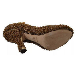 Dolce & Gabbana Gold Roses Embellished Heels Pumps Shoes