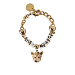 Dolce & Gabbana Gold Tone Brass Chain MY DOG Heart Bracelet