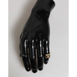 Dolce & Gabbana Gold Tone Brass Signet Square DG Logo Plaque Men Ring