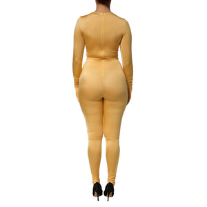 Gorgeous brand new with tags, 100% Authentic Dolce & Gabbana women’s jumpsuit.Crafted in Italy, this elegant piece is designed in a striking gold-yellow color with a body-hugging fit that highlights the silhouette. It features a round neckline, long sleeves, and slim-fit legs for a sleek, modern look.