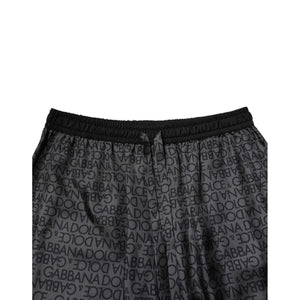 Dolce & Gabbana Gray Black Silk DG Logo Men Bermuda Shorts