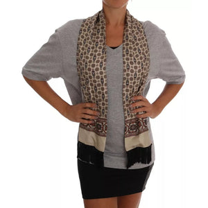 Dolce & Gabbana Gray Cotton Owl Silk Scarf Top T-shirt
