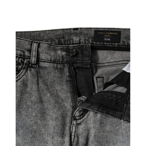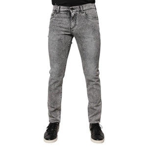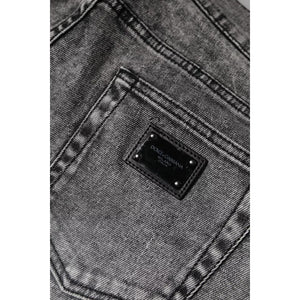 Dolce & Gabbana Gray Logo Plaque Cotton Slim Fit Denim Jeans