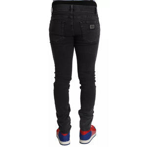 Dolce & Gabbana Gray Running Denim Stretch Logo Skinny Jeans