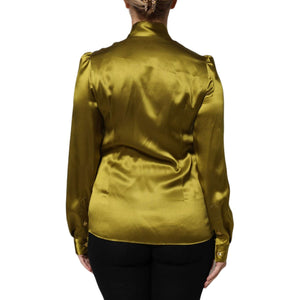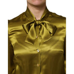 Dolce & Gabbana Green Ascot Collar Long Sleeves Blouse Top