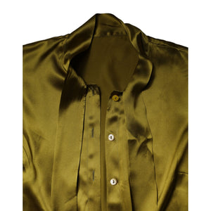 Dolce & Gabbana Green Ascot Collar Long Sleeves Blouse Top