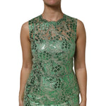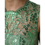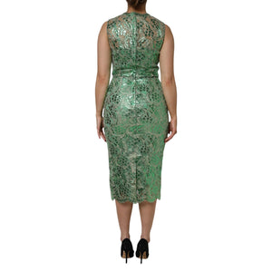 Dolce & Gabbana Green Cotton Floral Lace Sheath Midi Dress