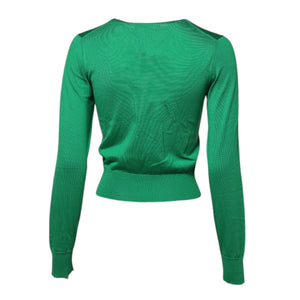 Dolce & Gabbana Green Floral Detailing Silk Pullover Sweater