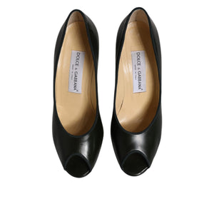 Dolce & Gabbana Green Leather Peep Toe Heels Pumps Shoes