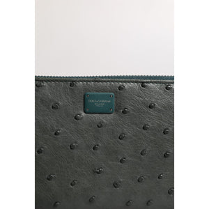 Dolce & Gabbana Green Ostrich Logo Plaque Zip Around Continental Wallet