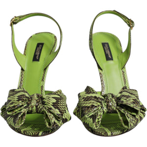 Dolce & Gabbana Green Python Leather Heels Sandals Shoes