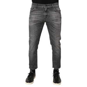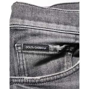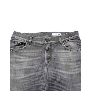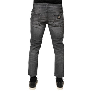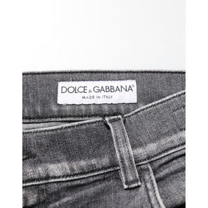 Dolce & Gabbana Grey Cotton Denim Slim Fit Distressed Pants Jeans
