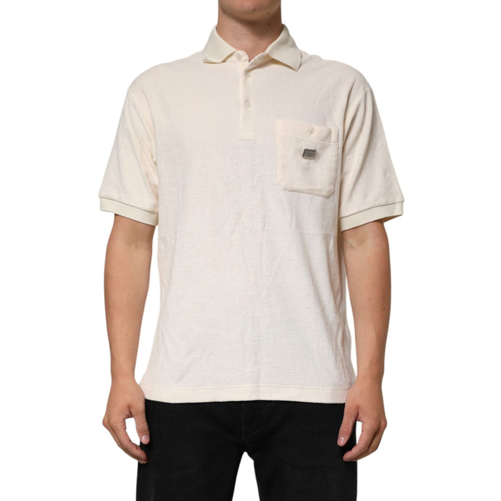 Dolce & Gabbana Ivory Cotton Terry Logo Pocket Polo T-shirt