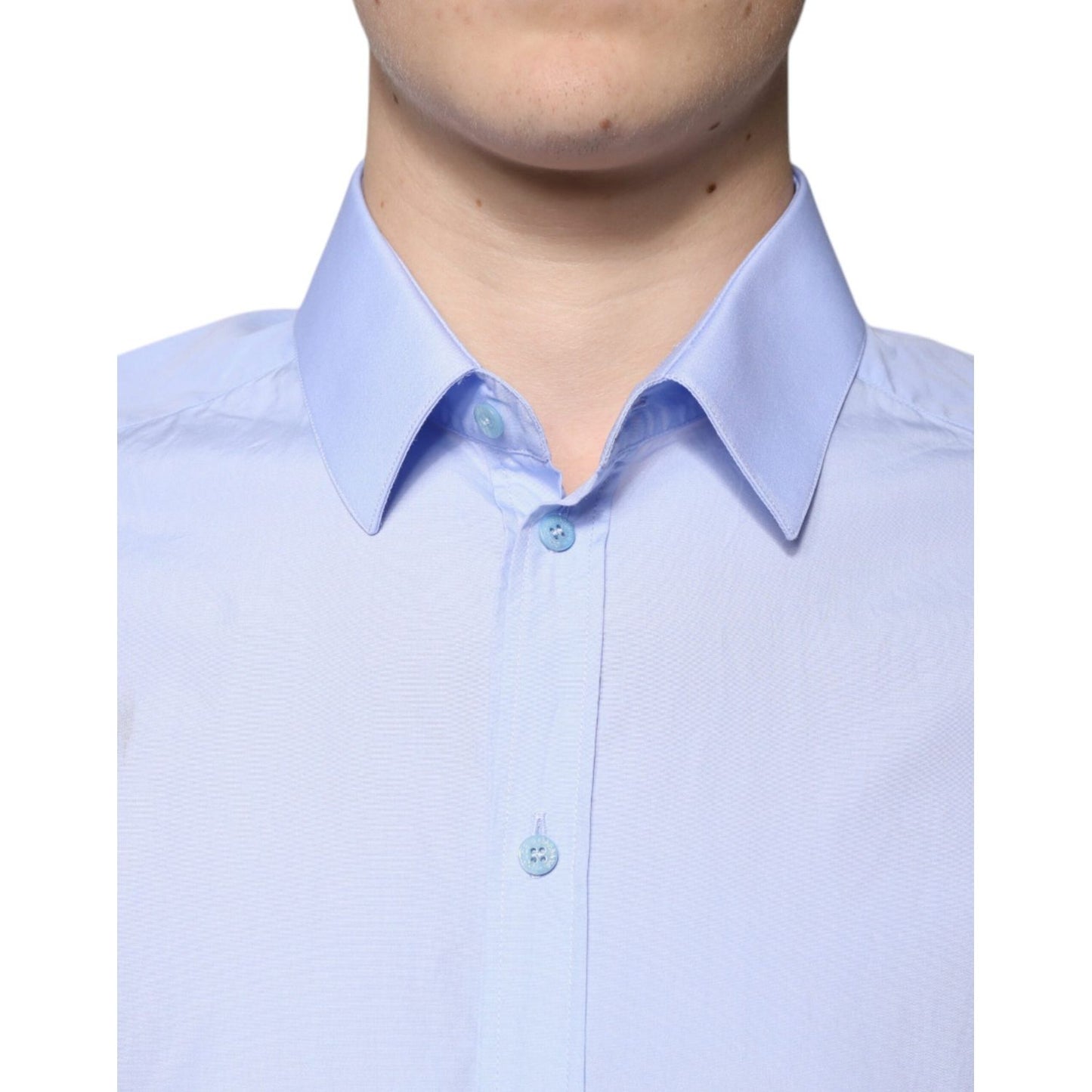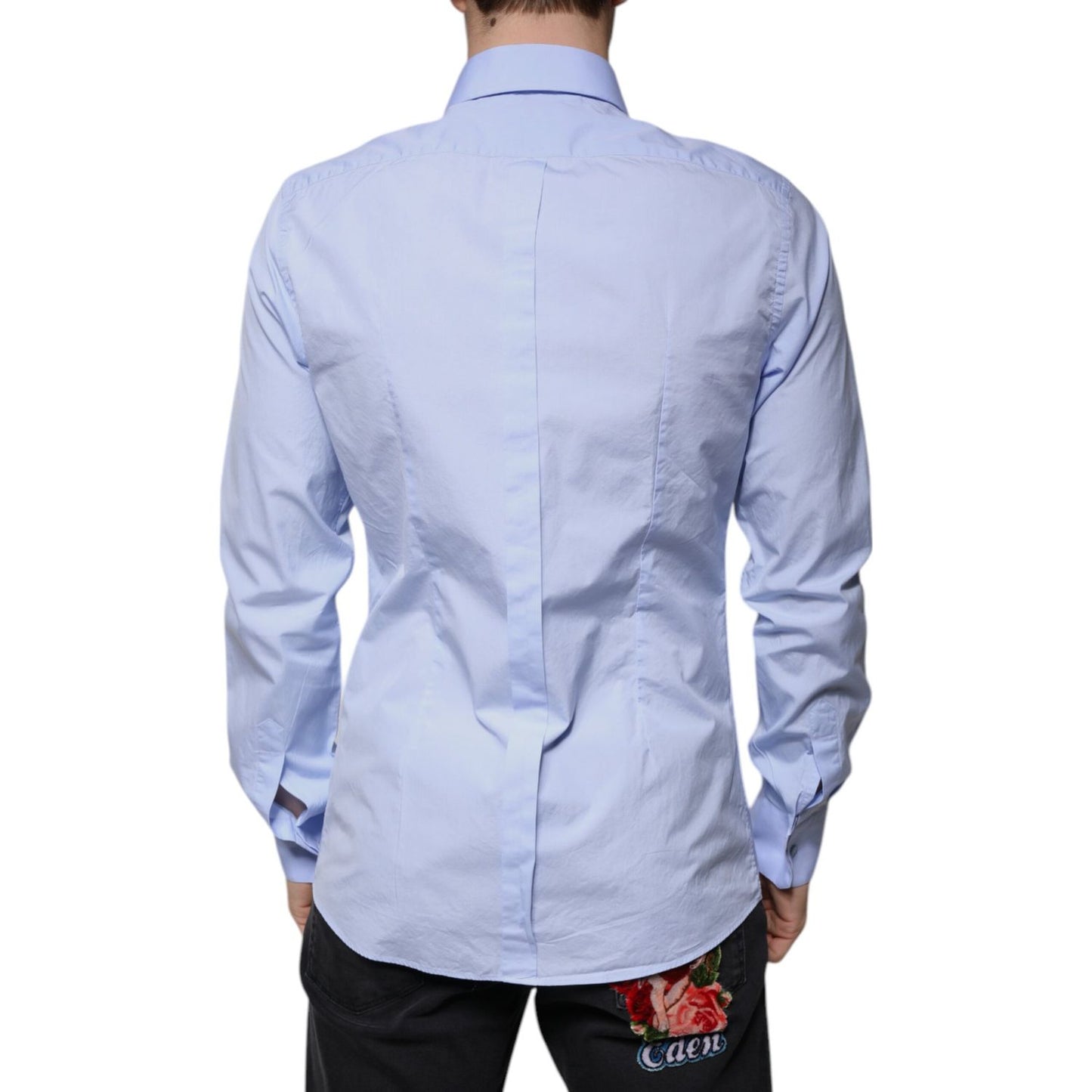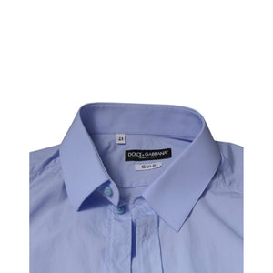 Dolce & Gabbana Light Blue Cotton Slim Fit GOLD Men Dress Shirt