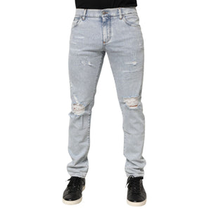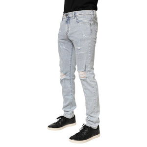 Dolce & Gabbana Light Blue Distressed Slim Fit Ripped Denim Jeans