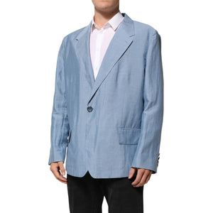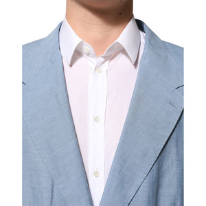 Dolce & Gabbana Light Blue Linen Double Breasted Men Jacket Blazer
