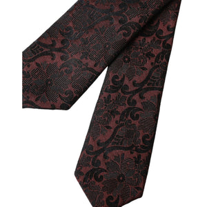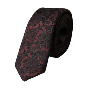 Dolce & Gabbana Maroon Floral Fantasy Silk Adjustable Men Tie