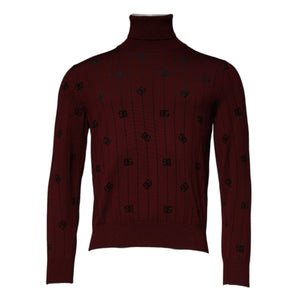 Dolce & Gabbana Maroon Monogram Turtleneck Pullover Sweater