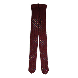 Dolce & Gabbana Maroon Nylon Crystal Embellished Pantyhose Tights
