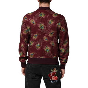 Dolce & Gabbana Maroon Peacock Feather Print Bomber Jacket