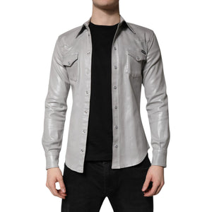 Dolce & Gabbana Metallic Gray Cotton Button Down Shirt
