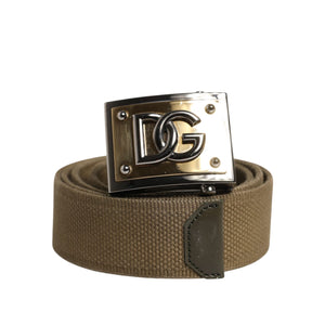 Dolce & Gabbana Military Green Nylon Logo Metal Buckle Belt