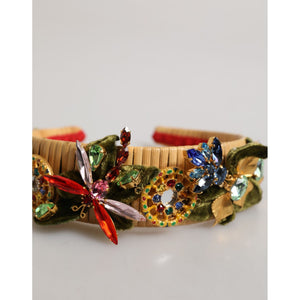 Dolce & Gabbana Multicolor Crystal Floral Gold Green Velvet Crown Headband