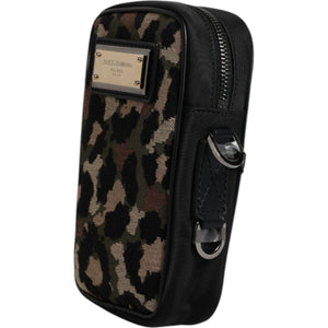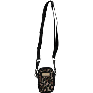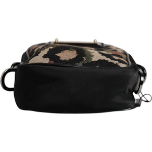Dolce & Gabbana Multicolor Leopard Jacquard Logo Plaque Neck Strap Bag