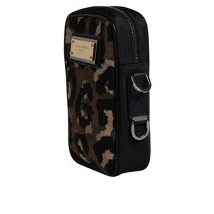 • Dolce & Gabbana Multicolor Leopard Jacquard Logo Plaque Neck Strap Bag